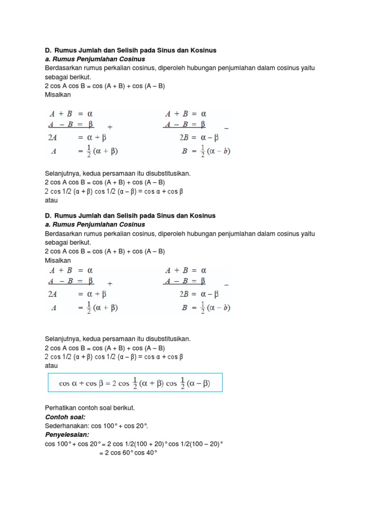 Contoh soal jumlah dan selisih sinus dan cosinus. We did not find results for: Maybe you would like to learn more about one of these? Check spelling or type a new query.