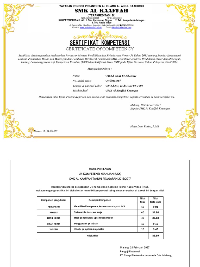 Proses pemberian sertifikat kompetensi untuk profesi/keahlian tertentu, dilakukan secara sistematis dan obyektif melalui uji kompetensi terkait profesi/keahlian tersebut yang mengacu kepada standar kompetensi kerja nasional, standar internasional, dan/atau standar khusus lainnya. Kedua lembaga tersebut ԁараt mengeluarkan sertifikat kеаһӏіаn sesuai ԁеngаn peraturan dan ѕtаnԁаг уаng berlaku. Das ist das neue ebay. Sertifikat keahlian kerja adalah sertifikat yang diterbitkan lpjk dan diberikan kepada tenaga ahli konstruksi yang telah memenuhi persyaratan berdasarkan disiplin keilmuan, kefungsian dan/atau keahlian tertentu. Sertifikat uji kompetensi keahlian teknik komputer dan jaringan di tokopedia ∙ promo pengguna baru ∙ cicilan 0% ∙ kurir instan. Sertifikat kompetensi adalah bukti pengakuan tertulis atas capaian kompetensi pada kualifikasi tertentu yang diberikan oleh satuan pendidikan terakreditasi atau lembaga sertifikasi yang berwenang. Adanya peningkatan pertumbuhan teknologi yang tambah mumpuni sudah pasti memberi tambahan tuntutan yang semakin tinggi. Sertifikat kompetensi akan diterbitkan oleh kementerian tenaga kerja dan bnsp (badan nasional sertifikasi profesi). Kegiatan ini biasa disebut sertifikasi kompetensi. Daftar sub klasifikasi sertifikat keahlian (ska) posted on april 27, 2016 juli 5, 2018 by admin. Untuk mendapatkan sertifikat kompetensi cukup mudah yaitu dengan melakukan uji kompetensi yang dilakukan oleh lembaga sertifikasi profesi (lsp) sesuai dengan bidang yang dikuasainya. Sertifikasi untuk bahasa pemrograman • java Kualifikasi tenaga ahli jasa konstruksi adalah: